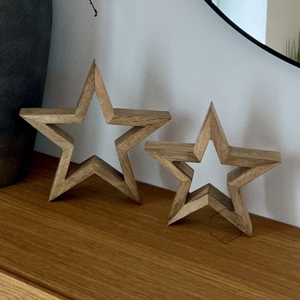 Dekorujte svůj domov originálními masivními dřevěnými hvězdami z pravého dřeva. Každý kus má díky přirozené kresbě dřeva osobitý vzhled. Hvězdy jsou ideální nejen pro vánoční období – ozdobí polici, okenní parapet, slavnostní stůl i vstupní prostor po celý rok. Jde o stylový doplněk v přírodním, rustikálním i moderním interiéru.
