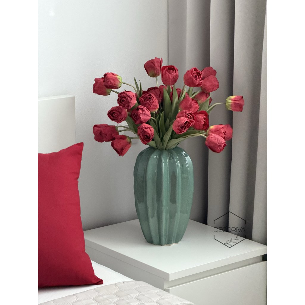 Vyzdobte svůj domov jarním látkovým tulipánem. Tento dekorativní prvek o délce 45 cm je ideální pro výzdobu vázy nebo jako doplněk pro vaše květinové aranžmá.