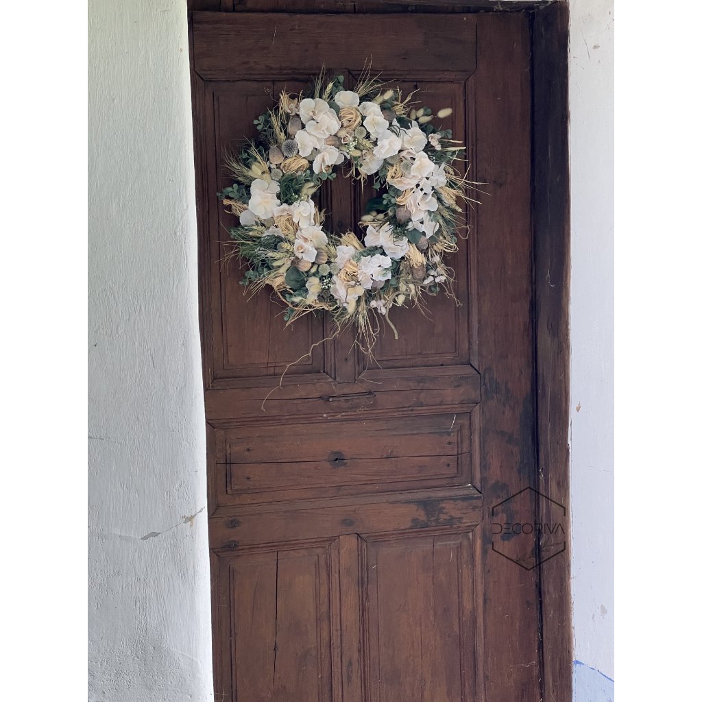 Věnec je ručně aranžovaný z kvalitních sušených i trvanlivých květin, takže zůstane krásný a bezúdržbový po celý rok.